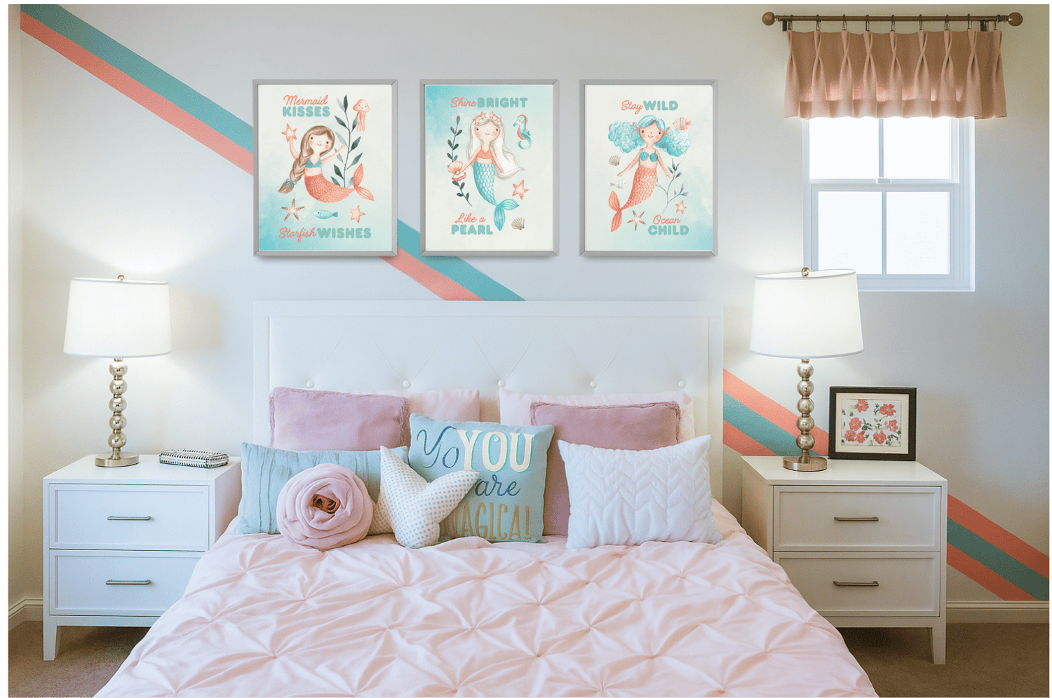 Dive into the enchanting world of Mermaid Friends, where whimsical underwater characters come to life. Choose your favorite individual print or select all three prints as a complete set to create a captivating gallery wall. Each design features a unique mermaid character alongside delightful ocean companions, brought to life through vibrant orange and blue hues. Paired with fun quotes, this collection celebrates the magic of the sea with playful sophistication. Perfect for adding coastal character to any space, these pieces work beautifully as a coordinated display or individually scattered throughout your home.